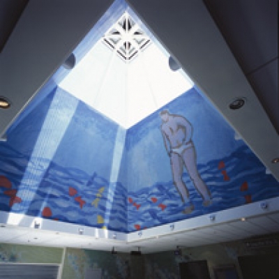 Gli accessi si trovano in piazza Scipione Ammirato e dintorni, al centro di un rione costruito ai primi del Novecento, architettonicamente interessante, ma danneggiato dall'incuria e dalle scarse vie di comunicazione. L'area è stata ora completamente pedonalizzata, e arricchita con verde, arredo urbano ed elementi architettonici d'avanguardia: mosaici, installazioni di ceramica, lampioni. Nel mezzo, si erge la guglia di acciaio e vetri colorati, elemento di distinzione dell'Atelier Mendini, e che dà luce al piano mezzanino. L'ambiente di accesso alla stazione è ampio e luminoso: mosaici verdi ricoprono tutte le pareti, mentre immagini marine sono il tema dei mosaici di Sandro Chia, che rivestono l'interno della guglia; un'unica rampa di scale mobili conduce al piano dei binari, sovrastata da altorilievi di Luigi Ontani con temi tipici della cultura partenopea.