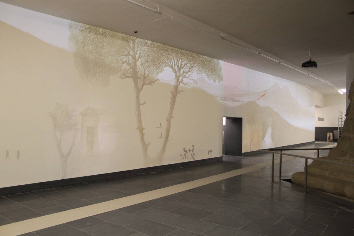 La stazione accoglie un'unica, grande installazione di arte contemporanea, Passaggi di Michal Rovner (Tel Aviv, 1957), un "video-affresco" - come lo ha definito Achille Bonito Oliva, coordinatore artistico delle Stazioni dell'Arte - nel quale le immagini inviate da cinque proiettori di alta precisione si fondono con quelle disegnate a pastello e dipinte con colori ad acqua dall'artista direttamente sulla lunga parete bianca dell'atrio (37,70 m x 4,00 m).