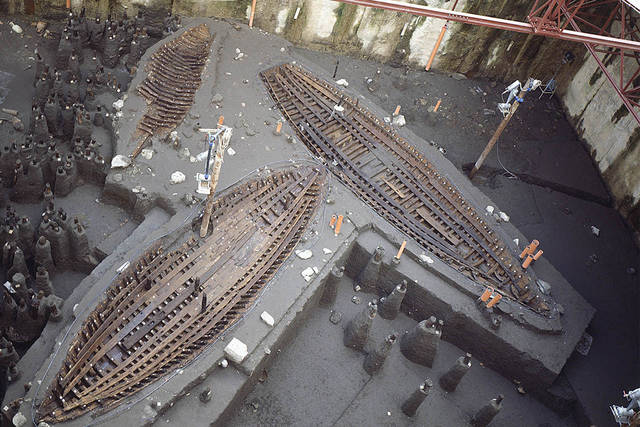 La vasta area di transito di Municipio ingloberà e metterà in mostra le eccezionali testimonianze archeologiche venute alla luce in occasione dei lavori di scavo per la stazione, nel corso di una delle più grandi indagini archeologiche dell'ultimo decennio. La storia rivelata dagli scavi comincia dall'antico porto di Neapolis, impiantato nell'insenatura marina che occupava parte della piazza, con i fondali, le antiche barche, la banchina di età augustea, si sviluppa con i resti dell'edilizia di età angioina sorta in coincidenza con la costruzione di Castel Nuovo alla fine del XIII secolo, e documenta i sistemi di difesa esterni al castello, realizzati prima da re Alfonso V di Aragona e poi dai viceré spagnoli, come i torrioni del Molo e dell'Incoronata, quest'ultimo già visibile nella parte della stazione aperta al pubblico.